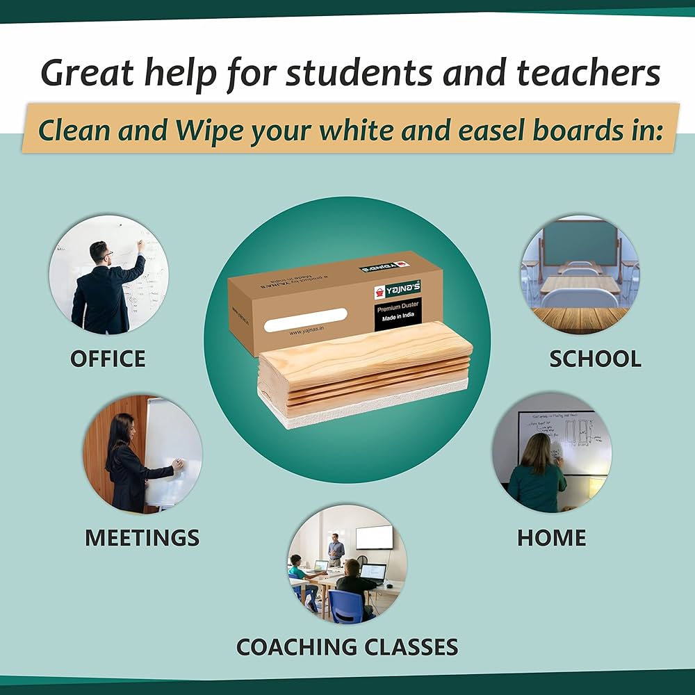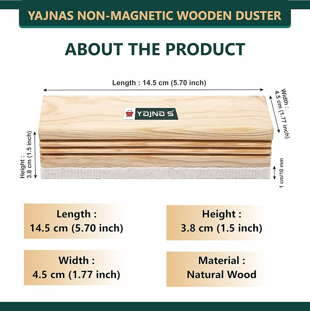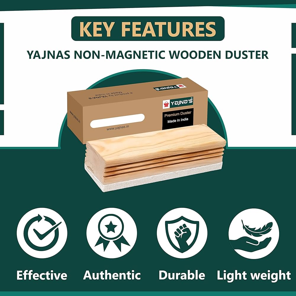 Natural Wooden Body Non Magnetic White Board and chalk board Duster, Light weight Easy to use and handle , Ideal for use on White boards and Chalk baords surface. Stylish and elegant body design