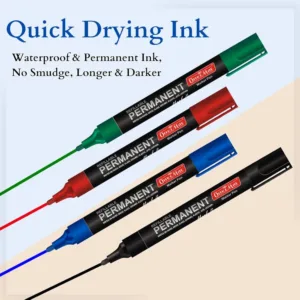 Premium Permanent Markers: Four durable, bold permanent markers in assorted colors (black, blue, red, and green) for clear and lasting markings.